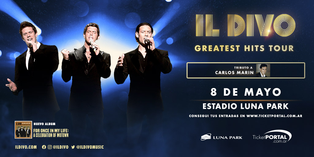 IL DIVO Presenta su gira mundial GREATEST HITS TOUR HOMENAJEANDO A CARLOS MARIN EN VIVO 8 de mayo 2022 BUENOS AIRES - Estadio Luna Park |